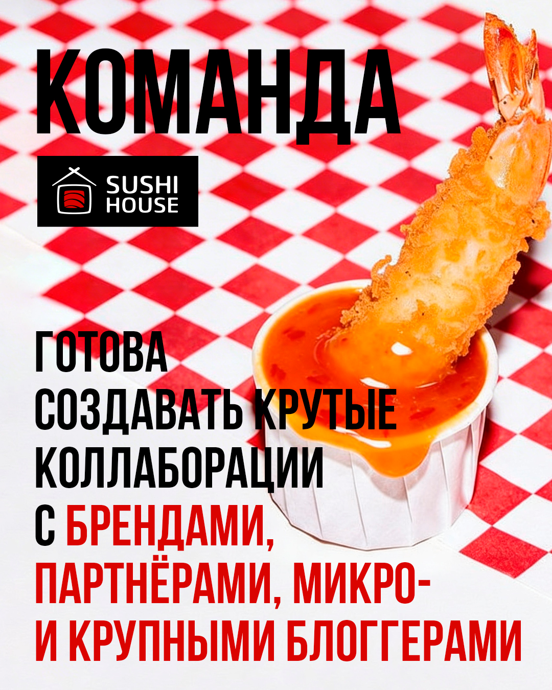 Если вы подумали, что мы на одной волне — напишите нам на почту marketing@sushihouse.by с пометкой «Партнёрство» и коротко расскажите о своей идее!