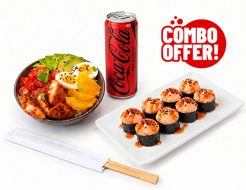 Тори Яки Тяхан, сладкий ролл такеши маки, кока-кола classic 0,33л, палочки для суши