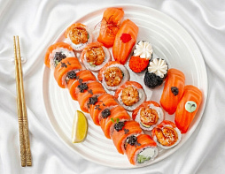 Ролл с лососем, креветк...